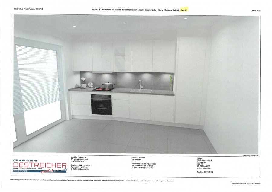 Home Project S.A. is offering a lovely new 89.04m² apartment for rent, located on the 3rd floor (no elevator) of a new residence built in 2025, ideally located on the Esplanade in Diekirch.